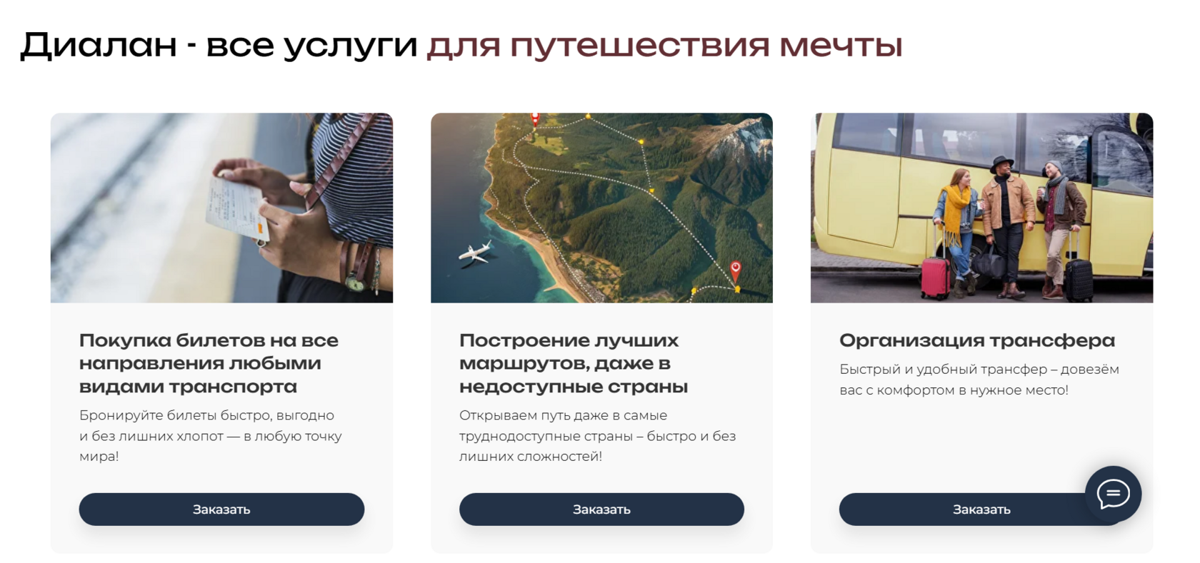 Во втором блоке рассказали про услуги агентства. На одностраничнике это плитки с кнопкой, которая вызывает форму обратной связи. В будущем при расширении сайта до корпоративного можно прикрутить к этим плиткам отдельные страиницы, чтобы каждая работала на свой поисковой запрос.