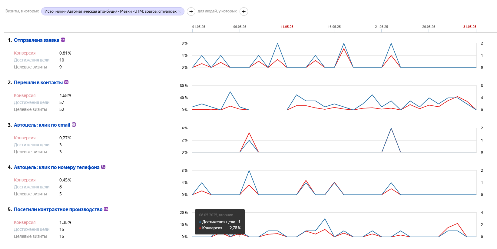 P.S. По обратной связи клиента звонков больше, чем видит метрика, поэтому один из этапов - подключение колтрекинга. Он платный, но позволяет видеть реальное количество звонков. Из опыта рост составляет до х3 раз.