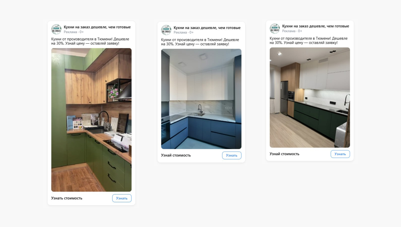 Креативы собрали из реальных фотографий клиента и сделали отличный оффер потенциальному клиенту.